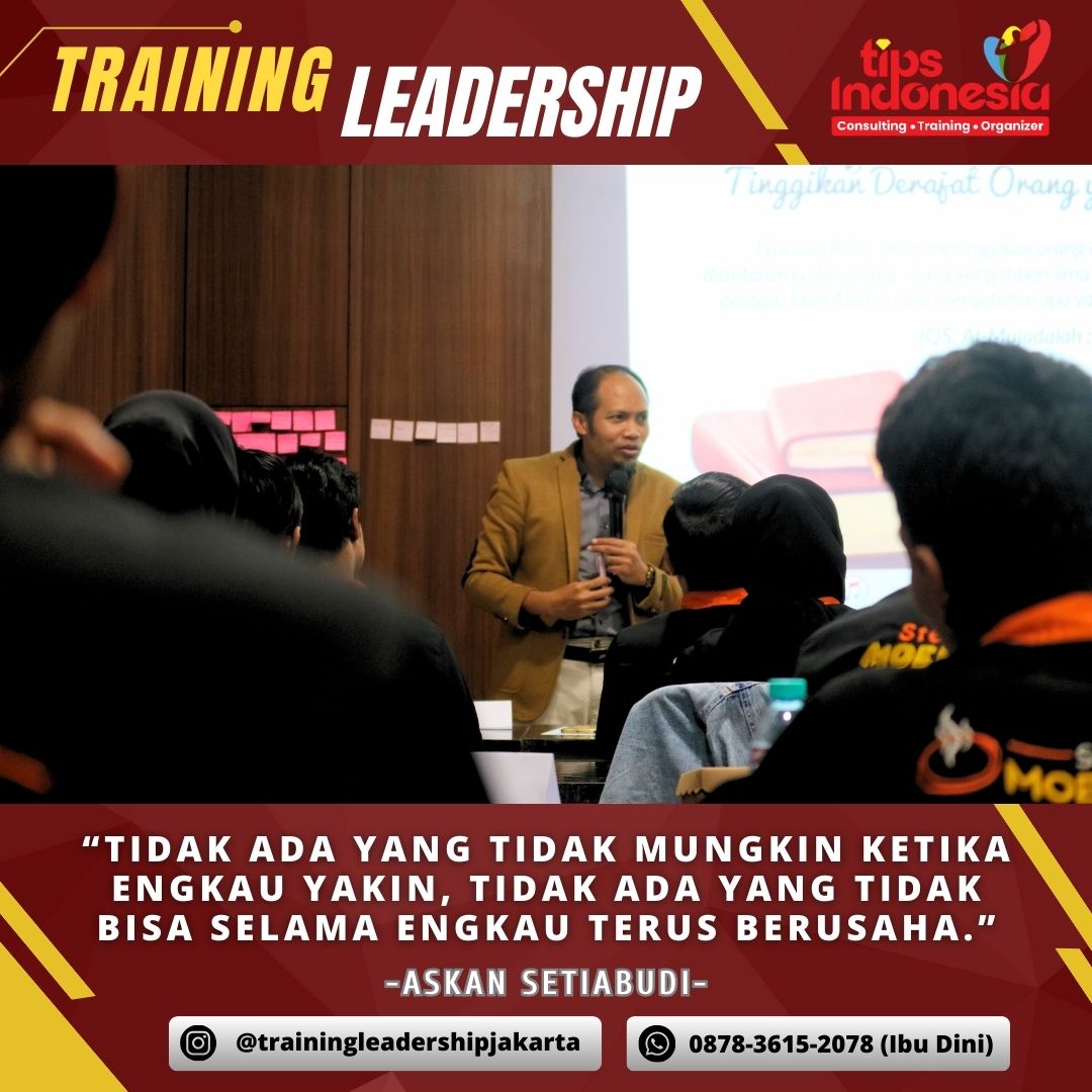 Pelatihan kepemimpinan untuk siswa di Solo memberikan kesempatan bagi siswa untuk mengembangkan keterampilan kepemimpinan yang krusial untuk masa depan mereka, termasuk komunikasi efektif, kerjasama tim, dan pengambilan keputusan yang bijaksana. Di Sragen, panduan pelatihan kepemimpinan berfungsi sebagai sumber daya yang berharga bagi individu yang ingin meningkatkan kemampuan kepemimpinan mereka, menawarkan panduan praktis dan latihan yang dapat diterapkan dalam berbagai konteks. Sementara itu, pelatihan kepemimpinan di Jakarta menekankan pengembangan pemimpin yang adaptif dan proaktif, dengan fokus pada strategi kepemimpinan yang responsif terhadap tantangan saat ini dan masa depan, serta mampu menginspirasi dan memotivasi orang lain untuk mencapai tujuan bersama.